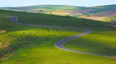 坝上草原--离北京最近的草原,其实北京北部的高原统称为坝上,从东到西依次是:塞罕坝、丰宁坝上、沽源坝上、张北坝上,我这次走的是一条新路:张北坝上和沽源坝上中间的一条小路:草沿天路,去看草原的秋色,那蓝蓝的天、白白的云。周六清晨5:30出发,八达岭高速。9月中旬了,一路上小车很少,但大车很多,总体路况不错。京张高速转张承高速,张家口五一路出口出,进张家口北环路,大境门左转西行进山,菜市村方向。到这片风电场后要特别注意了:水泥路消失后,就是小柏油路了,看到柏油路后,一定记住向右后方转弯,不要直行,拐过来就是当地人称作的---草沿天路。